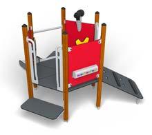Rampes, sièges de balançoire adaptés, dossiers et escaliers améliorent l'accessibilité.