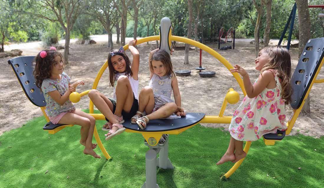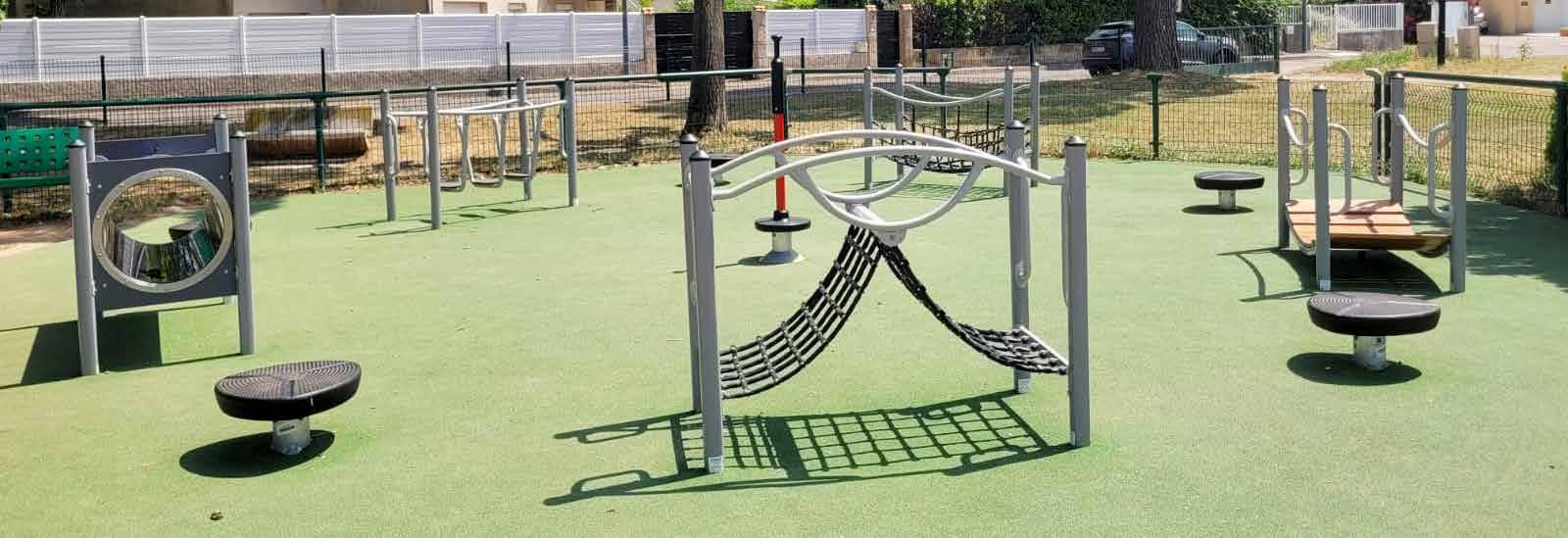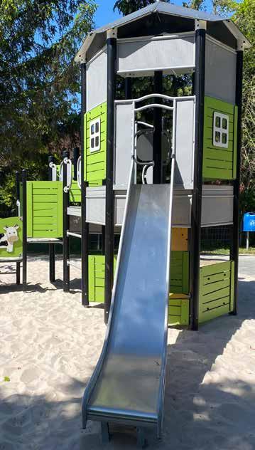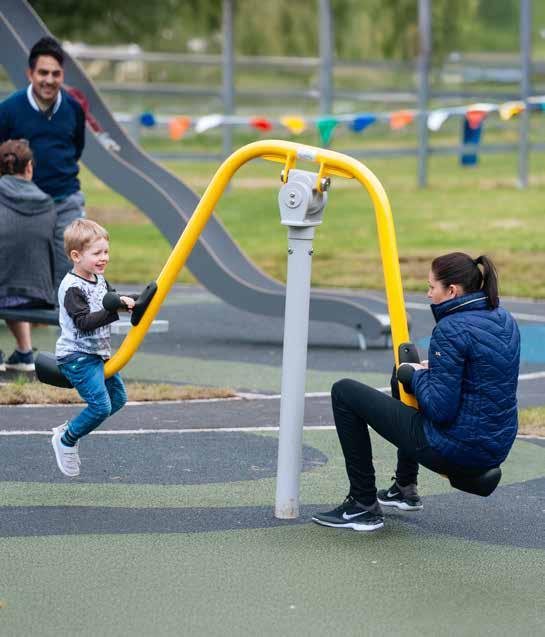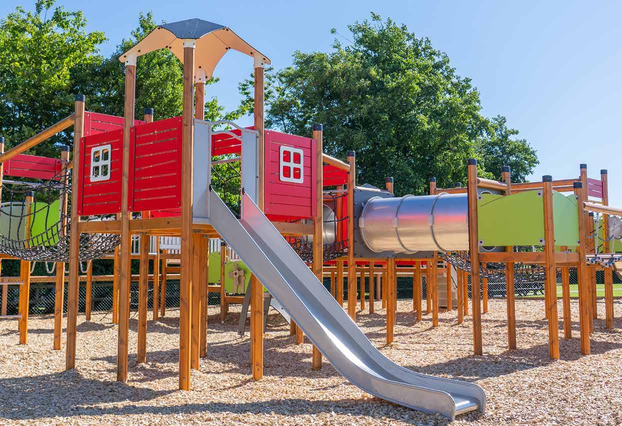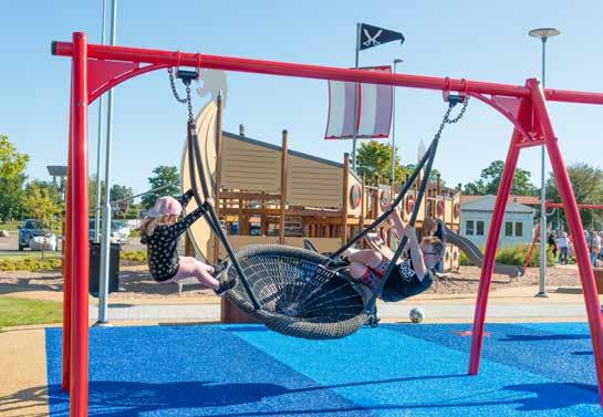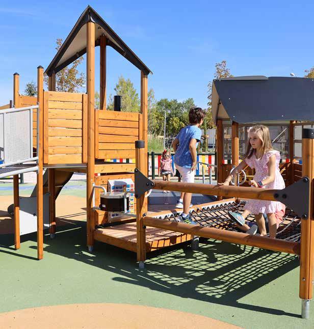 The play area features engaging structures and equipment for children of all ages and abilities, creating an inclusive space where everyone can explore and enjoy time together.