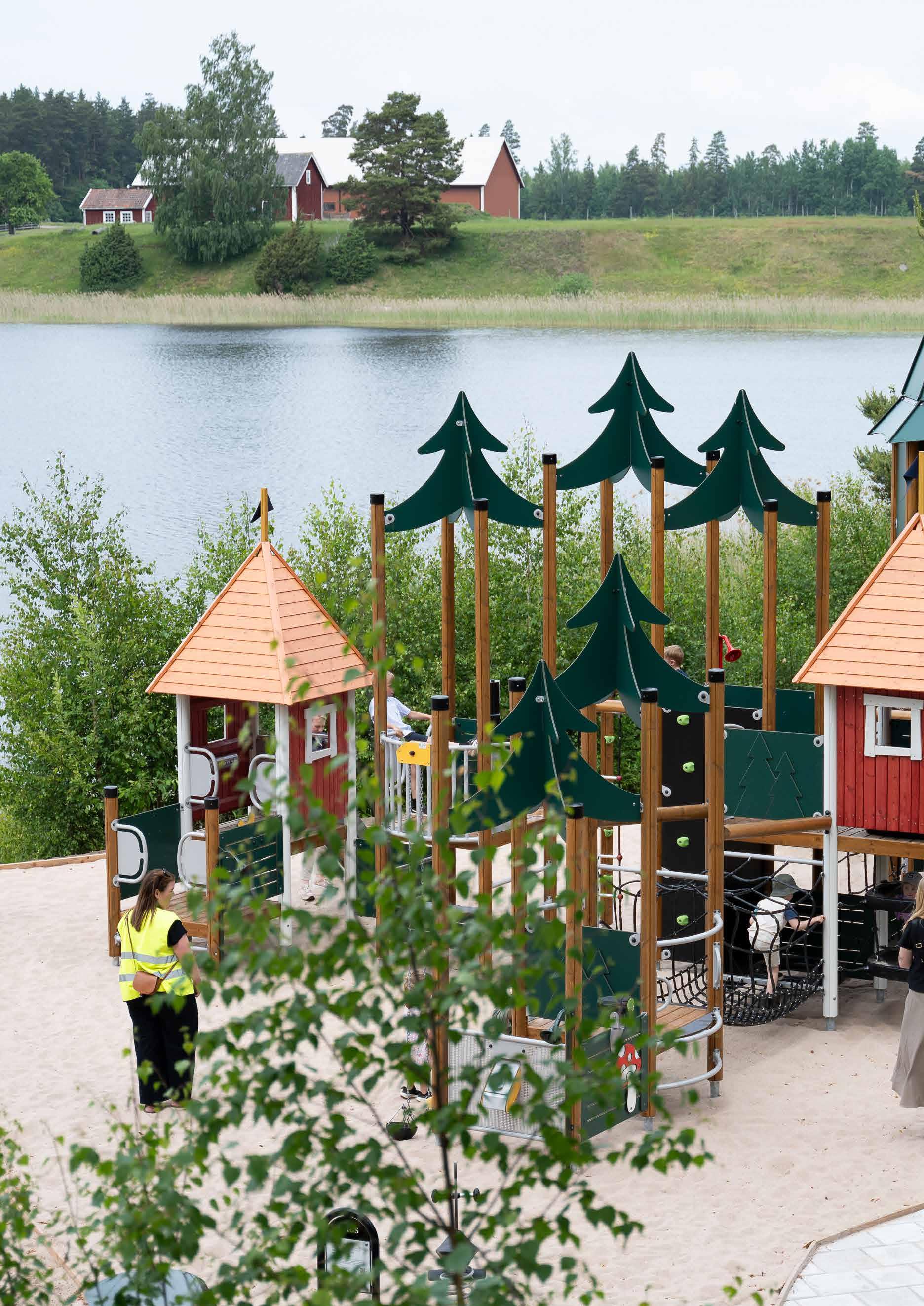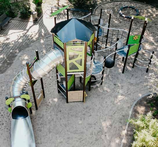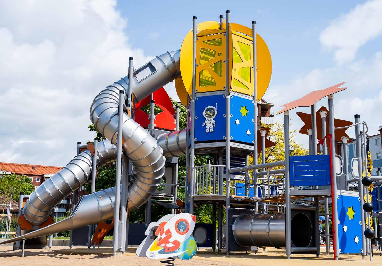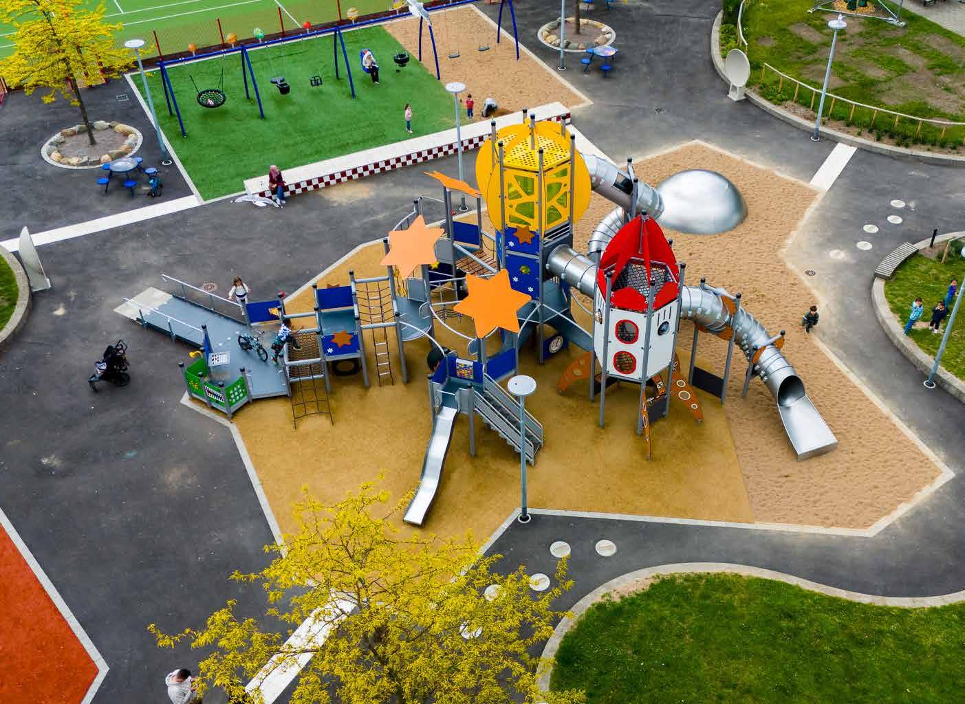 A playground inspired by space Rymdlekan, which translates to “The Space Playground”, features a playful and imaginative space theme that captures children’s curiosity and sense of wonder. From rocket-shaped play structures to planetary design elements, the playground invites young explorers to embark on intergalactic adventures.