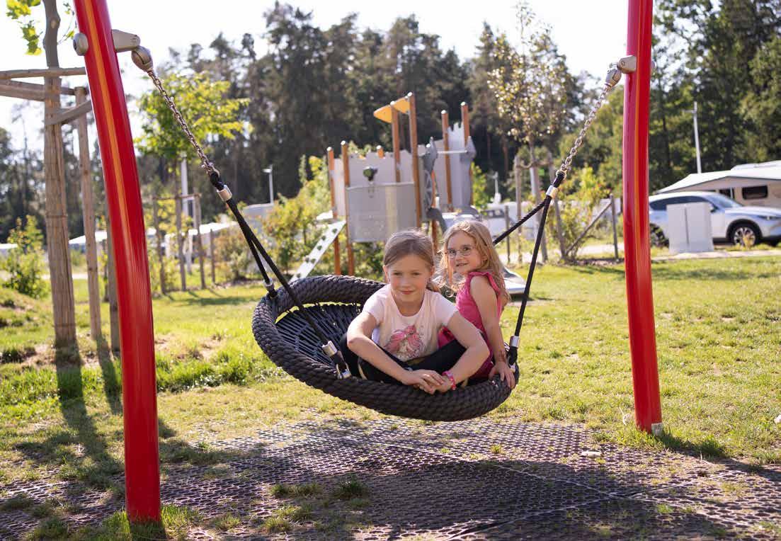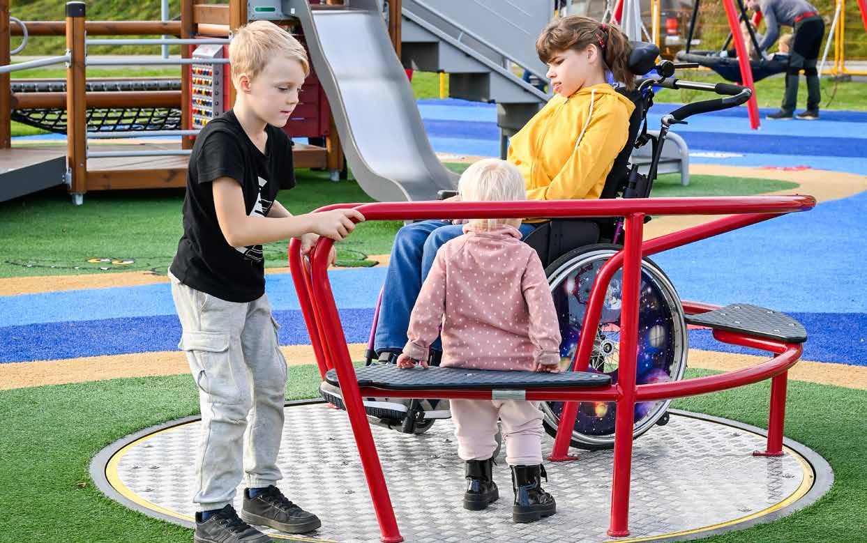 Rymdlekan is a thoughtfully designed, accessible playground that welcomes both children and adults of all ages and abilities. The layout prioritizes inclusion, with smooth asphalt pathways that make navigation easy for everyone, including those using wheelchairs or strollers.