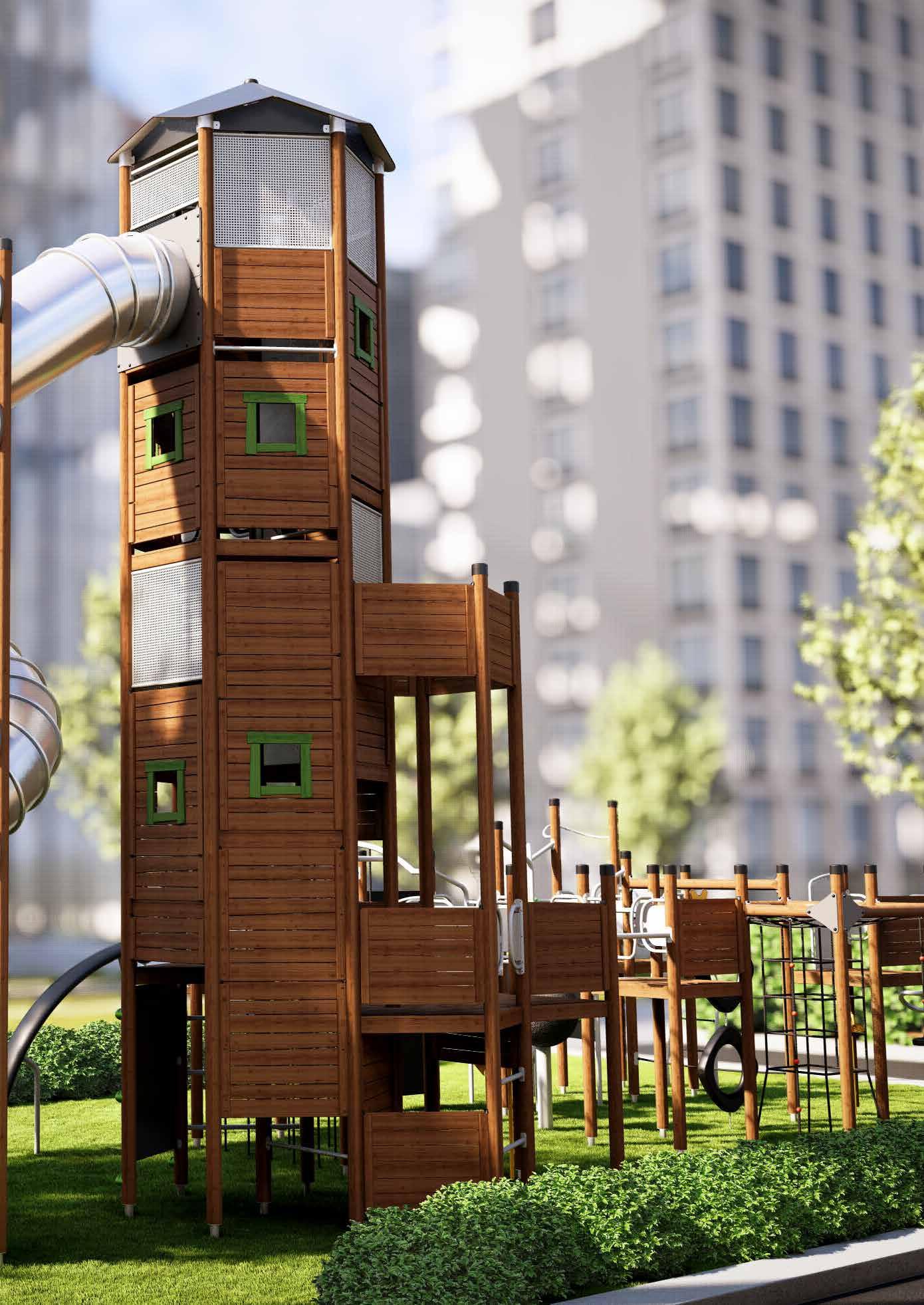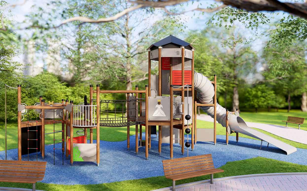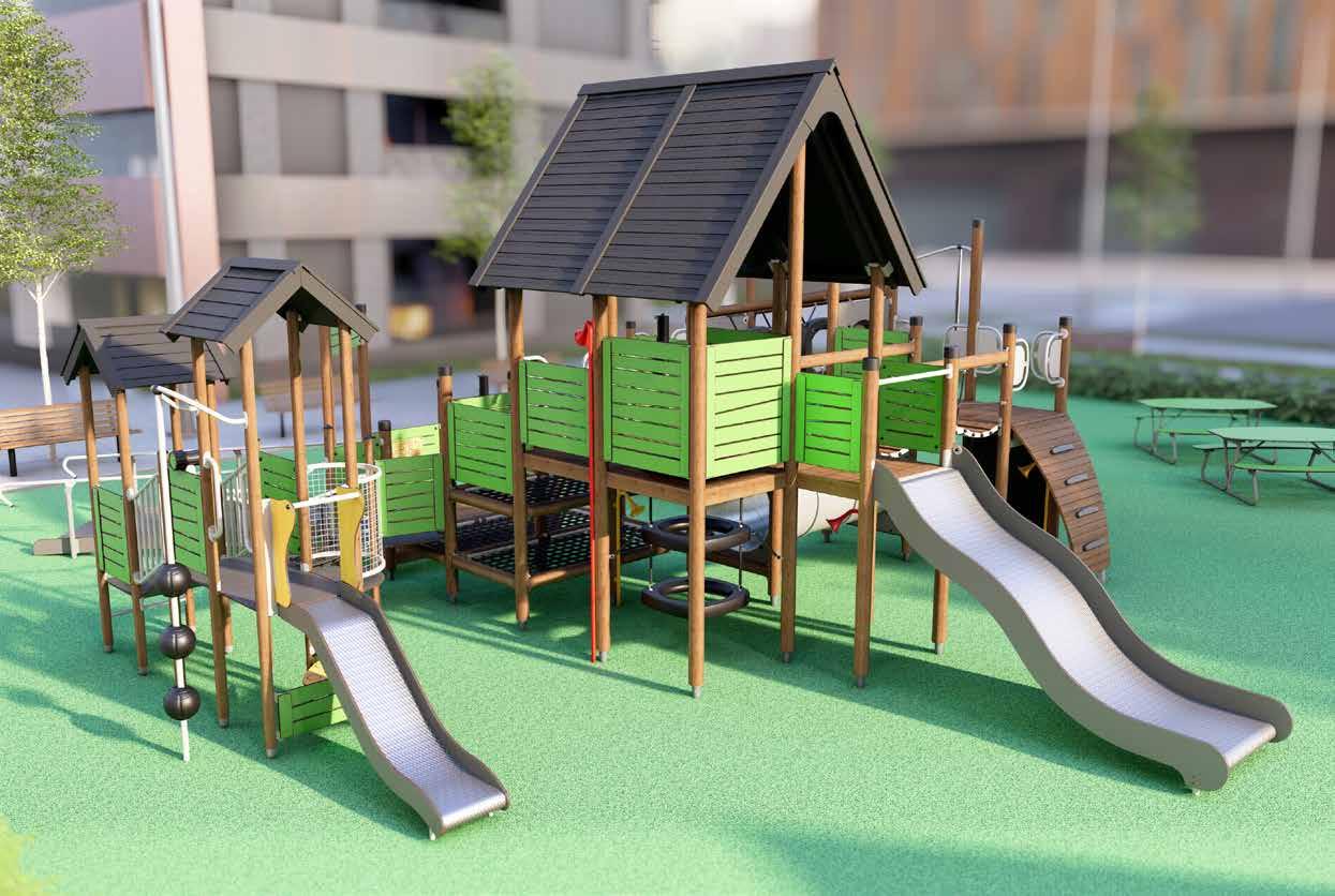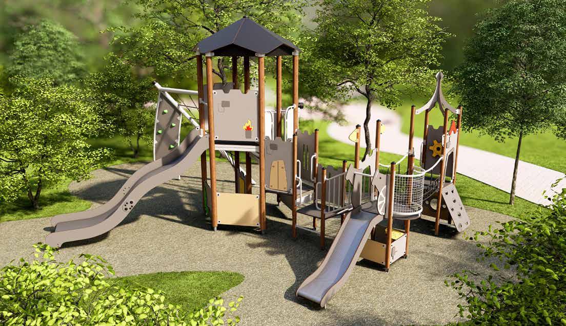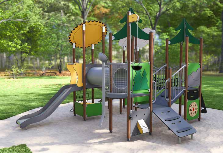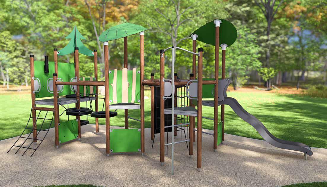 Inspired by towering trees, woodland creatures, and hidden trails, these play elements encourage both active and imaginative play.