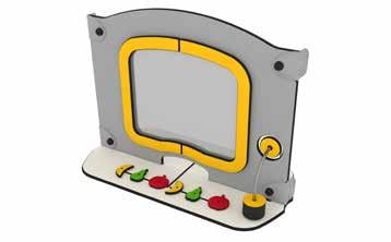 A colorful and interactive playground panel designed to resemble a charming fruit shop where children can engage in imaginative role playing.