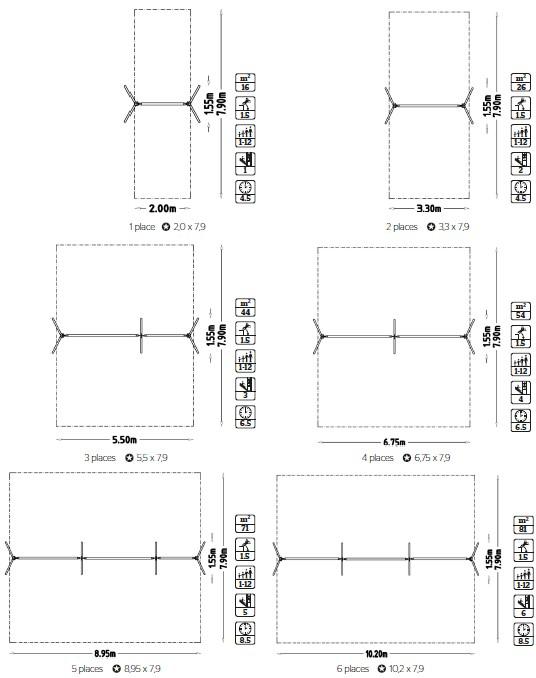 Boren 8098205 S Bleu/Jaune/Blanc 8098206 OM Bleu/Jaune/Blanc 6,40 x 4,60 m 2 25 <0.60 1-5 12 25 Hornavan 8098217 S Vert/Beige 8098218 OM Vert/Beige 6.45 x 5,20 m 2 30 1.00 21 30 Vättern 8098203 S Vert 8098204 OM Vert 10,35 x 8,85 m 2 64 1.00 1-5 20 60 Runn 8098207 S Rouge / Vert 8098214 OM Rouge / Vert 8,40 x 7,00 m 2 43 1.3 2-5 18 36 Storavan 8098215 S Vert/Beige 8098216 OM Vert/Beige 8,85 x 7,05 m 2 45 1.00 1-5 20 52 SYSTEMES DE JEU UniMini BOIS / HPL 1-5 26