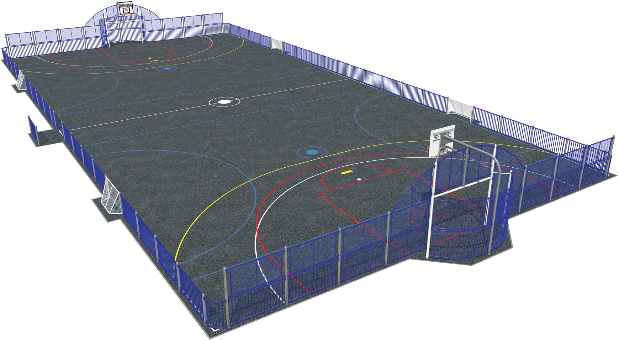 För att förenkla utformning och konstruktion byggs arenorna av 1 meter höga paneler. De kan kombineras till 1- 2- 3- eller 4-meters höjd och du kan välja mellan alternativ med galler, nät eller massiva paneler. De låga gallerpanelerna är standard, för hockeyplaner kan de ersättas med heltäckande paneler. Arenans delar kan ha olika höjd för att passa områdets förutsättningar.
