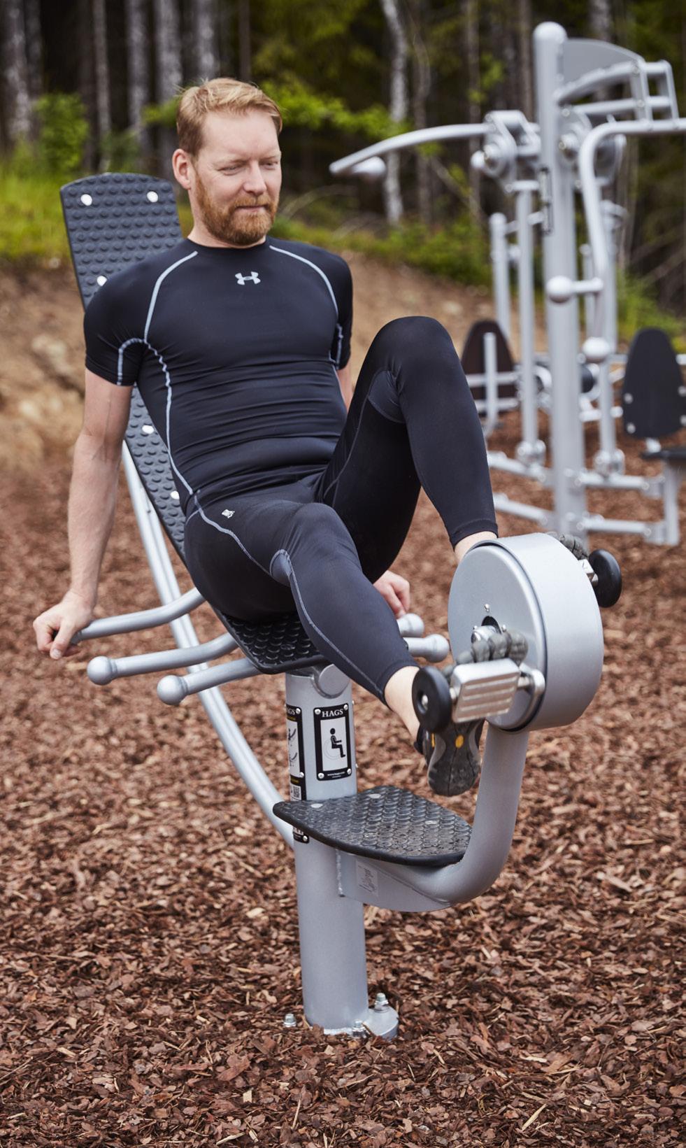 HAGS utegym är designade för att man ska kunna utmana sig själv oberoende av sin förmåga eller kroppstyp. I sortimentet finns rullstolsvänliga redskap och anpassad utrustning för seniorer.