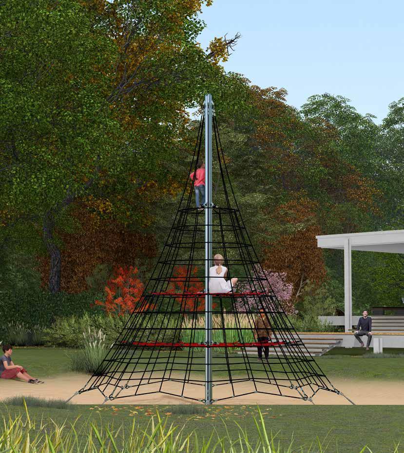 Sont des structures d'escalade en corde audacieuses et peu encombrantes, conçues pour inspirer le mouvement, l'imagination et la confiance, tout en occupant un espace réduit. Dotés d'un mât central en acier, de points d'ancrage sécurisés et de couches de cordes internes pour l'escalade et le repos, leur conception compacte et à parois raides offre un maximum de plaisir avec un encombrement minimal.