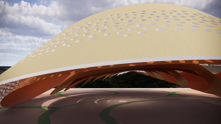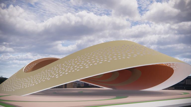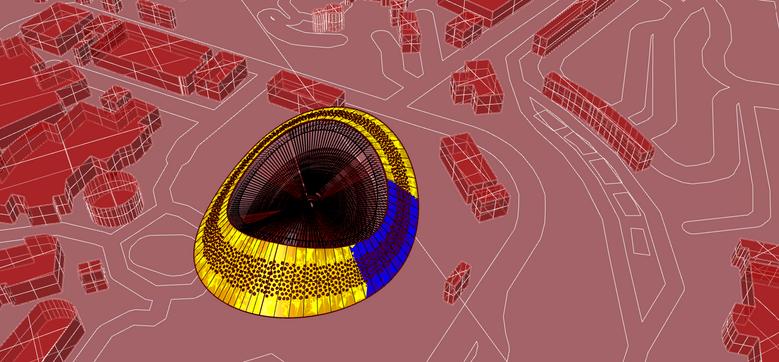 Perubahan bentuk yang kaku menjadi lengkungan yang dinamis. Dengan model ini juga telah terihat struktur utama dari bangunan dan geometri fasad