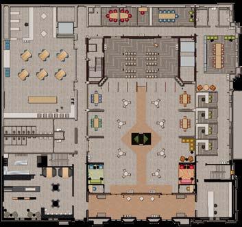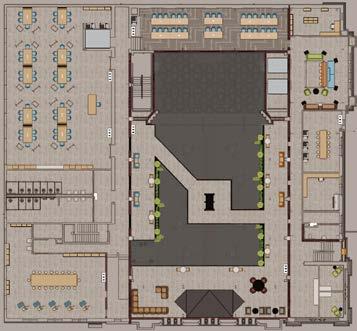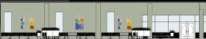 This interior will facilitate all strong connections for an interior + exterior pavilion like space. You will see materials in the ceiling, walls and floor that are vibrant + durable. An inspiration for quality, feel and look is that of a marketplace
