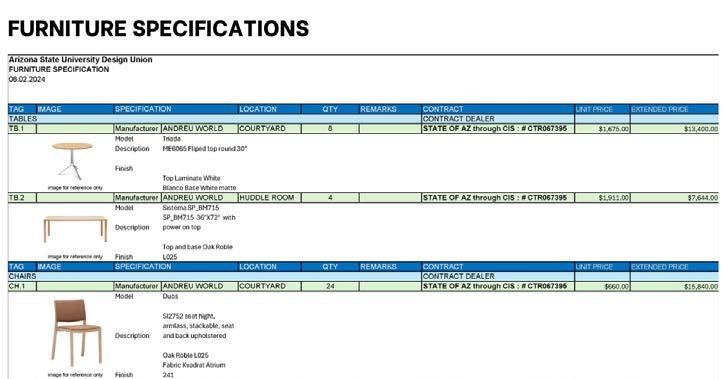 - Organizing existing furniture inventory - FF+E spreadsheets for each floor.