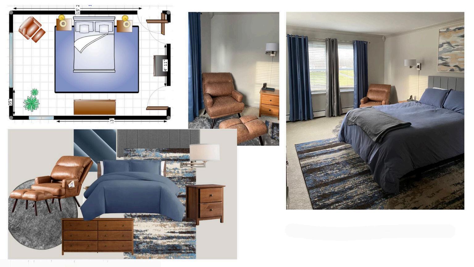 Concept/Style - Transitional style with a color palette of soothing blues and earth tones.