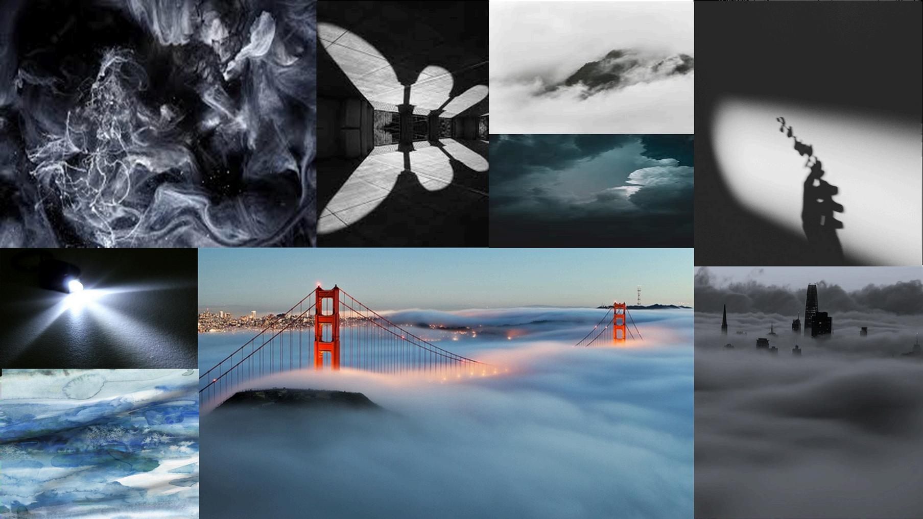 Concept - Shadowing and mystery, inspired by the billowing fog surrounding the Golden Gate Bridge.