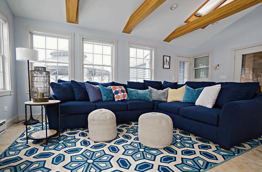 This space is meant for this family of 5 to relax, play games, and acts as an entrance from the back pool area. Durability in fabric was a big factor when designing this area.
