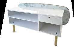 Zentraler Frisiertisch 2 Plätze. Weißlackierter oder Orme-Cannelle T11 Laminat Rahmen. Mit 4 integrierten Steckdosen ohne Beleuchtung und Fußstütze.