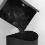 Tocadore con espejo redondo bordeado en negro brillo, fijado a una estructura ovalada en acero negro mate. Disponible bajo pedido un estante negro mate, para fijar directamente a la pared.