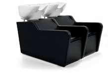 Island 2 position styling unit with a black lacquered or cinnamon elm (OrmeCannelle T11) laminate frame, 4 integrated sockets. Without lighting or footrests.