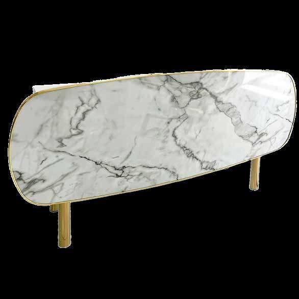 Coiffeuse avec tablette en inox. Cadre PVC en laiton ou noir brillant. Sans repose-pieds.