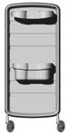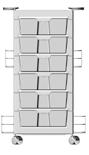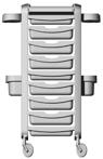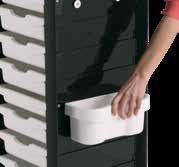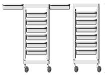 Trolley with 6 interchangeable drawers that can be hanged on the sides. Side supports included.