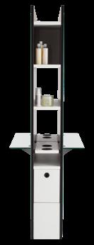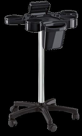 Dotato di sportelli superiori apribili a creare un piano di lavoro funzionale ed esclusive ruote “NoHair” anti-capello. Inclusi supporti laterali per alloggiare bombole, flaconi, phon e piastre.