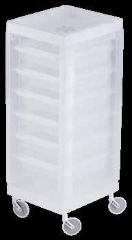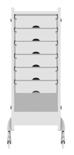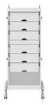 Carrello con 6 cassetti intercambiabili e agganciabili ai lati. Supporti laterali in metallo inclusi.