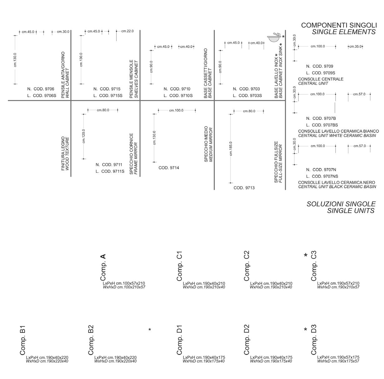 10 cm 150 cm 195 cm Cod. 9850L MOONLIGHT Light POSTI DI LAVORO WORKSTATIONS 12 13