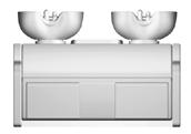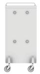 Multifunctional trolley, available in different colours, all made of stain-resistant material. Equipped with 2 sliding trays, compartments to store accessories, tinfoil cutting tool, lock with key (optional). Customizable front panel.