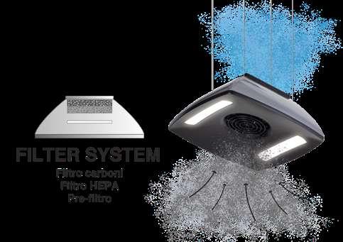 FILTRARE l’aria attraverso un filtro Hepa a carboni attivi per rimuovere i componenti chimici quali SOLVENTI, DILUENTI (COV) oltre a filtrare il particolato SOLIDO.