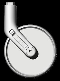 Lo spessore ridotto della ruota riduce notevolmente la superfice di contatto con il pavimento, rendendo minima la raccolta di eventuali capelli e lasciando la ruota sempre pulita ed efficente. Anche la forcella, con la sua conformazione, è stata disegnata per evitare che i capelli si raccolgano attorno al perno.