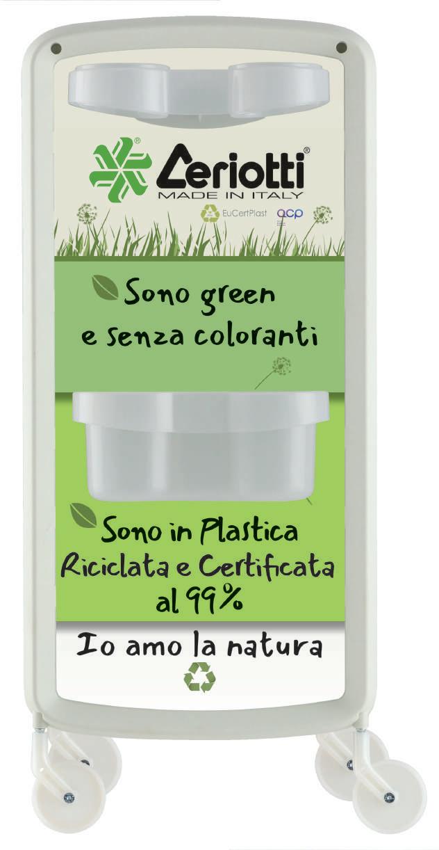 La linea ’’NATURA’’ presenta una serie di carrelli realizzati con l’innovativo ’’Circulen Recover PP300S Ivory’’, un co-polimero di polipropilene formulato per lo stampaggio ad iniezione.