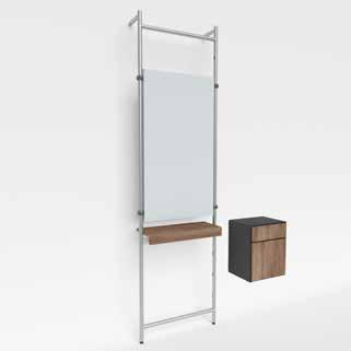 Il sistema Steel Fix è formato da un numero ridotto di componenti in grado di dare vita ad infinite soluzioni. Telaio e Crossbar sono gli elementi portanti sui quali si basa questa linea di specchiere, personalizzabili e componibili grazie ai diversi alloggiamenti presenti sul telaio e all’ampia gamma di accessori compatibili. Con questa tipologia di struttura si possono realizzare arredi a parete o autoportanti.