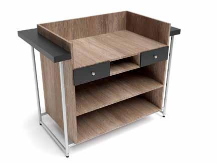 Reception con struttura Mix Fix, anima in metallo e scocca in legno con cassetti.