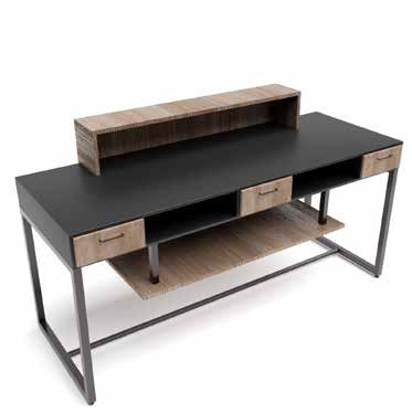 Reception con struttura Steel Fix, scocca e retro in legno, pianetto e cassetti in laminato.