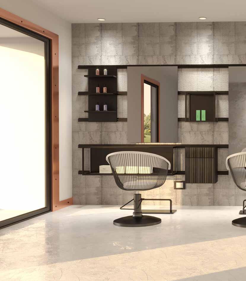 Con Kihon è possibile realizzare l’intero progetto di interior design: dalle specchiere alle scaffalature, dalla reception alla zona rivendita, in modo da esaltare al meglio le nostre poltrone, i nostri lavaggi e processori.