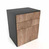 mobiletto componibile con cassetti e vani porta oggetti in tre differenti tipologie di legno nobilitato nero, grigio o bianco. Modular cabinet with drawers and storage compartments in three different colors of wood black, grey or white.