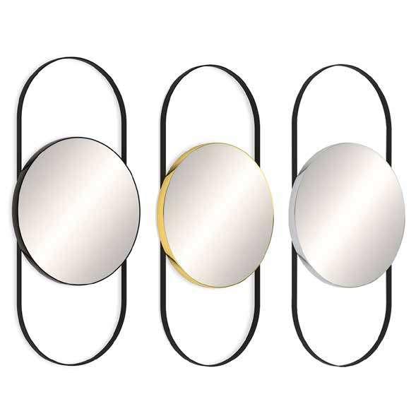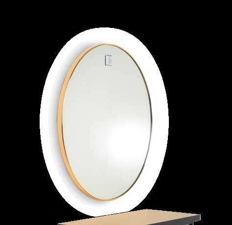 ■ Spiegel in runder Form mit PVC-Rahmen in glänzendem Gold oder glänzendem Schwarz.