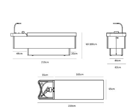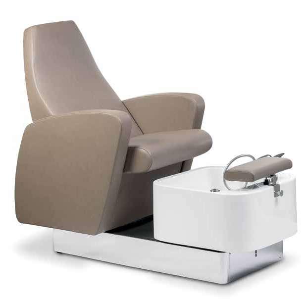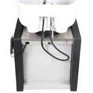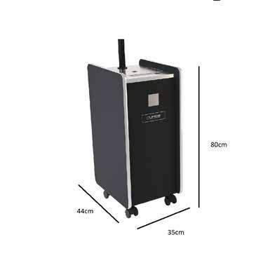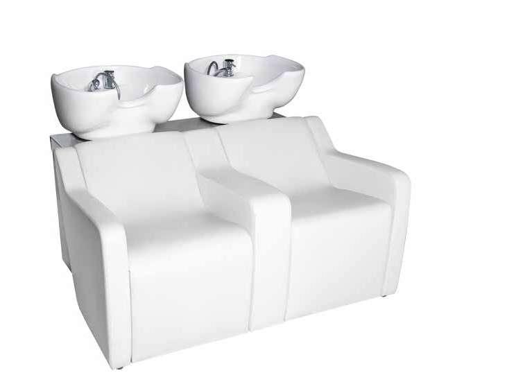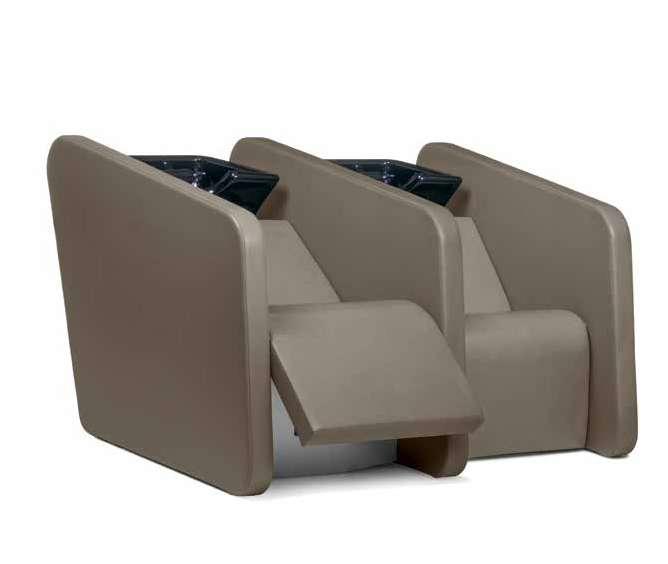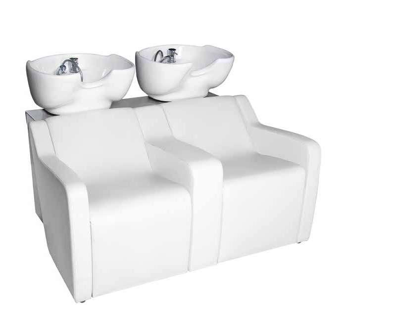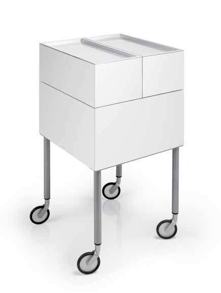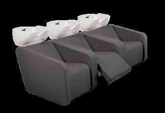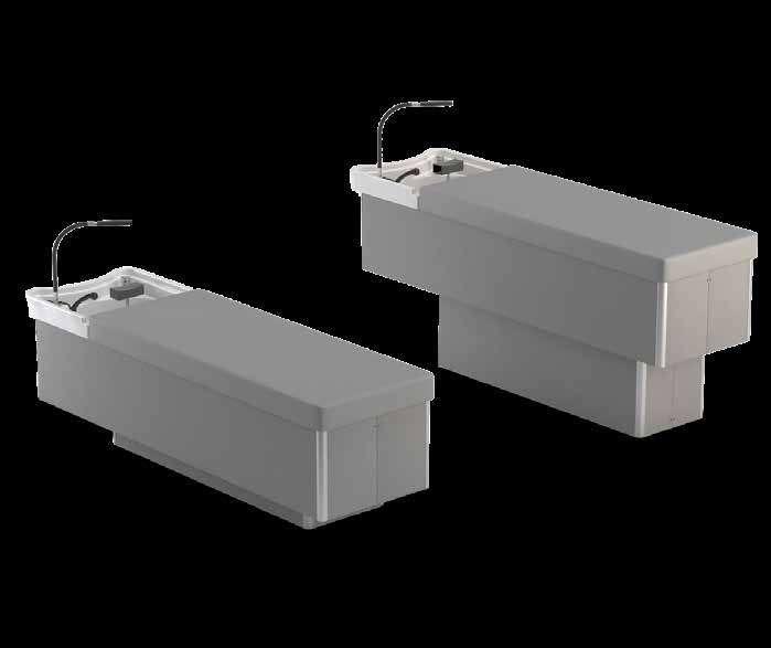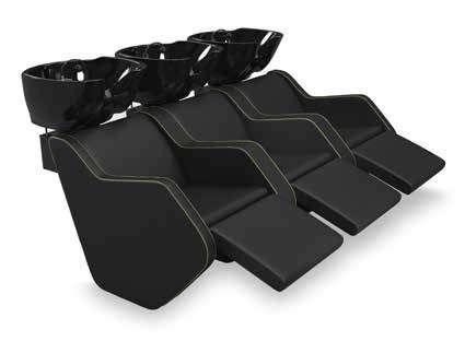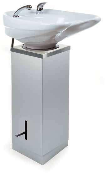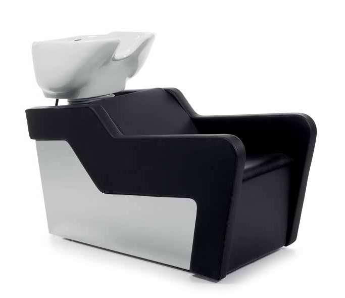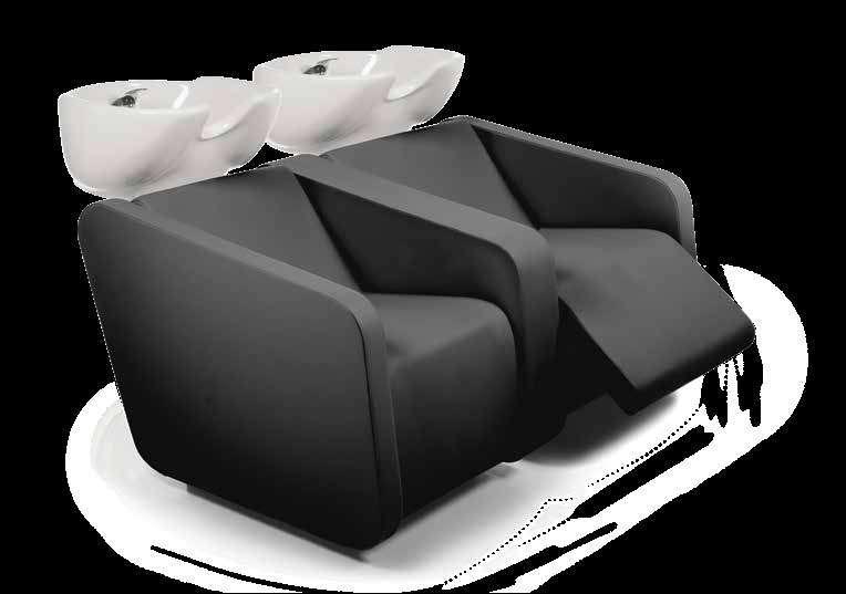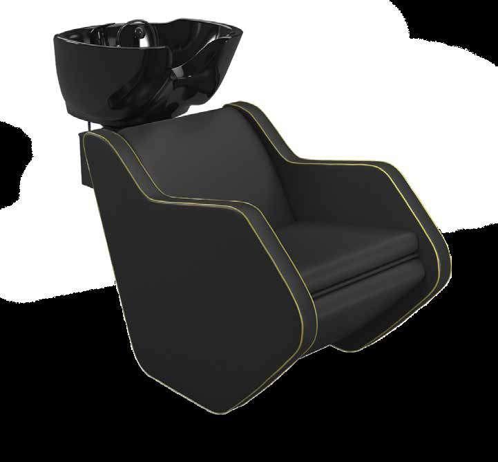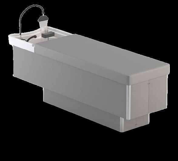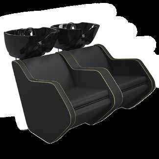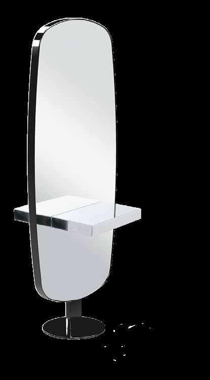 ■ 2 position island styling unit with frame in gold, gloss black or silver with LED lighting insert. Optional shelf in stainless steel or Montréal. Base tinted to match the frame. Equipped with 4 power sockets. Footrest not included.