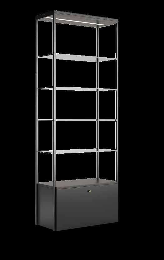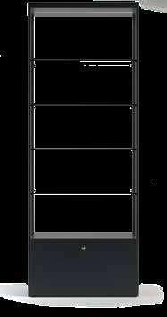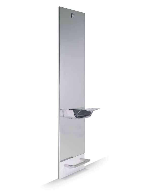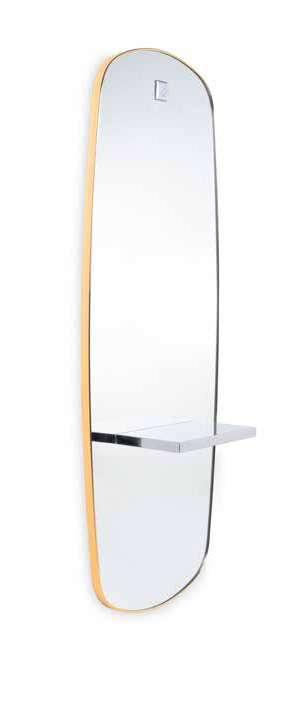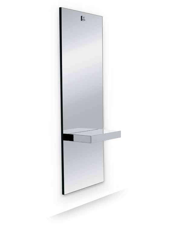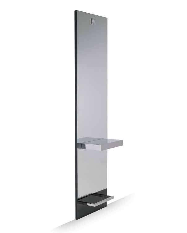 ■ Wall styling unit with frame in gold, gloss black or silver and LED lighting insert. Optional shelf in stainless steel or Montréal. Footrest not included.
