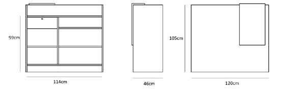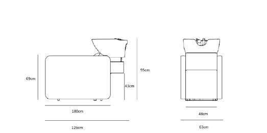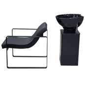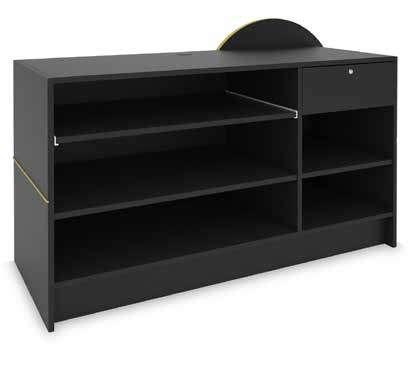 ■ Styling unit with black painted metal shelf and frame with brass or glossy black pvc finish. Without footrest.