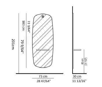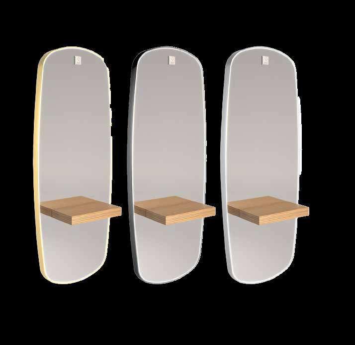 ■ Specchio sagomato con telaio finitura pvc lucido oro o nero.