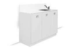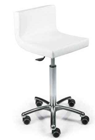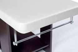 ■ Puesto de trabajo con repisa de acero inoxidable. Estructura de pvc con acabado latón o negro brillante. Sin reposapiés.