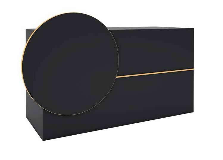 ■ Tocador 2 puestos en estratificado Noir Luxe T15. 4 tomas integradas. Tocadore en forma redonda con marco de pvc en acabado oro brillo o negro brillo.