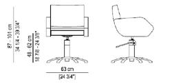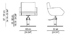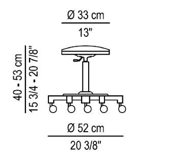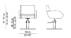Die Höhe der Sitze, die nur zur Information angegeben ist und die je nach gewählter Basis variiert. Die Höhe der Sitze ist so eingestellt, dass die Höhe des Sitzes 48 cm vom Boden (min. 46, max. 51) beträgt in Abhängigkeit von der gewählten Basis.