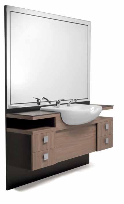 ■ Island 2 position styling unit with a black lacquered or cinnamon elm (OrmeCannelle T11) laminate frame, 4 integrated sockets. Without lighting or footrests.