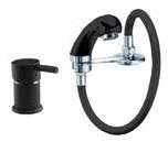 ■ Puesto de trabajo con repisa de metal pintado de negro. Estructura de pvc con acabado latón o negro brillante. Sin reposapiés.