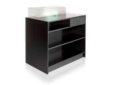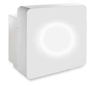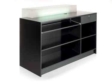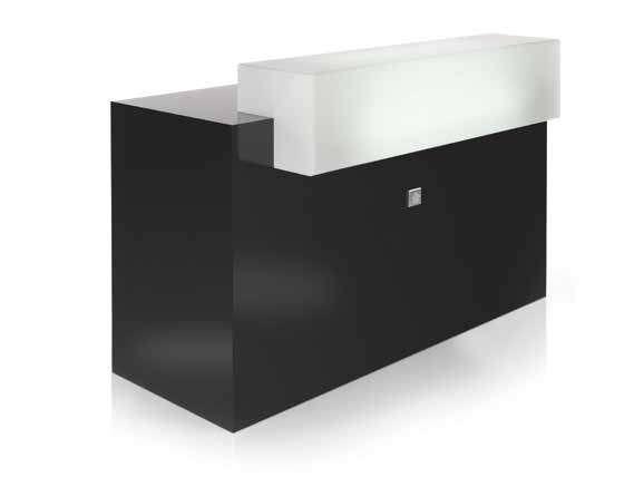 ■ Posto di lavoro con cornice in oro, nero lucido o argento e inserto a illuminazione LED. Mensola opzionale in acciaio inox o Montréal. Senza poggiapiedi.