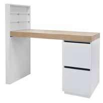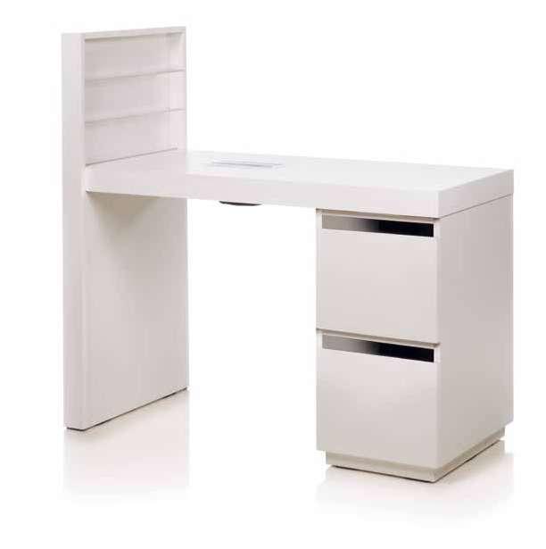■ Coiffeuse centrale 2 places avec cadre blanc laqué ou stratifié Orme Cannelle T11. 4 Prises électriques intégrées et rétroéclairage LED. Sans repose-pieds.