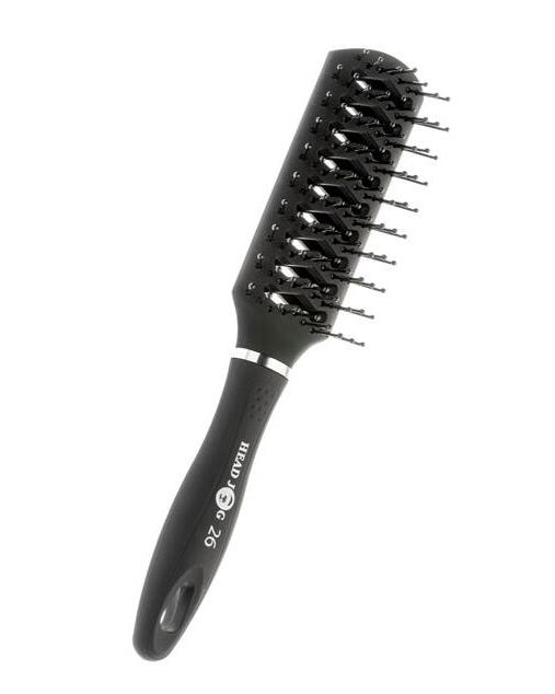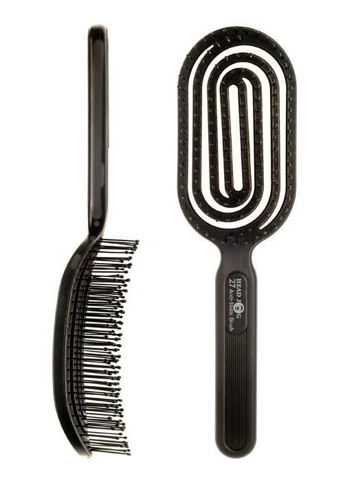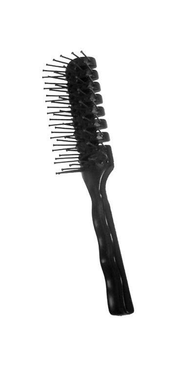 Black paddle brush in a classic style. Has an easy grip handle and is cushioned for comfort. 60822