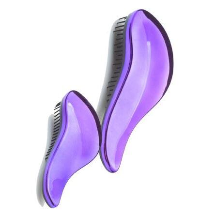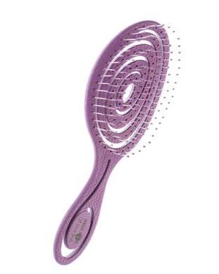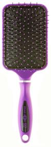 Purple paddle brush in a classic style. Has an easy grip handle and is cushioned for comfort. Wave Pins.