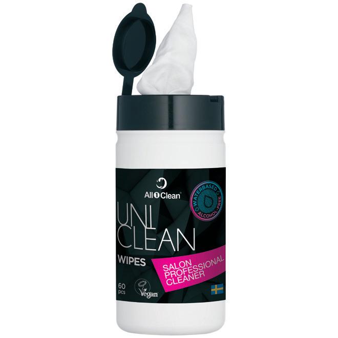 Uniclean wipes are water-based, alcohol and solvent free, environmentally friendly ready-to-use cotton wipes for salons, with mild citrus odour.