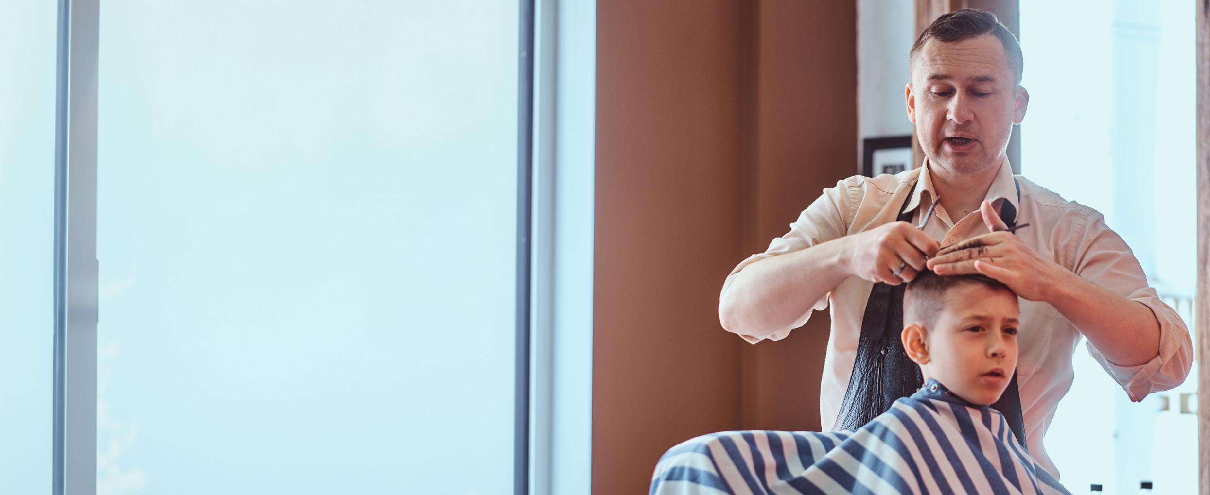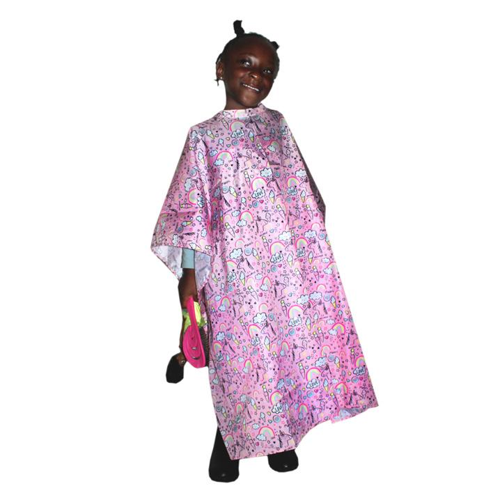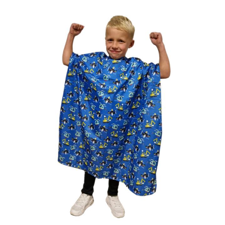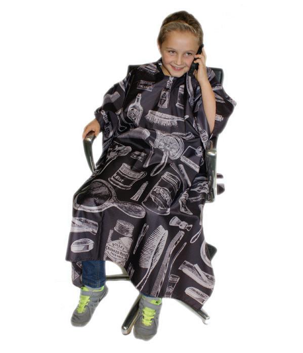 Stylish children’s cutting cape in a vintage barber design. Water repellent polyester woven material. Features an adjustable cling fastening to fit all.