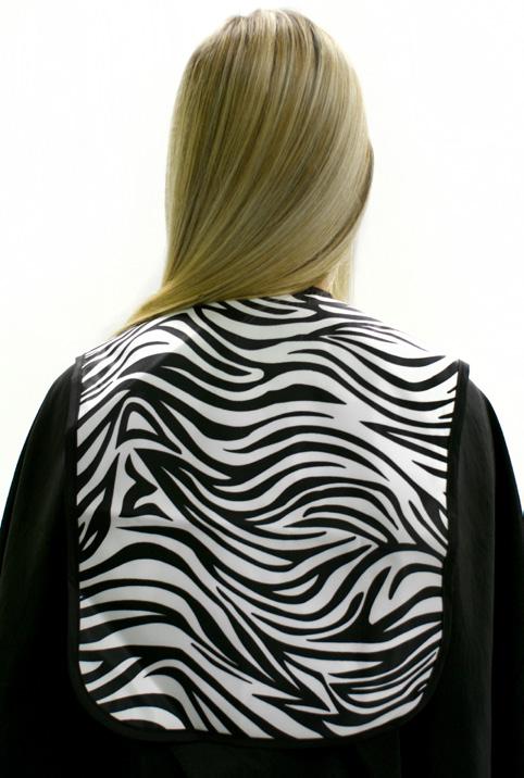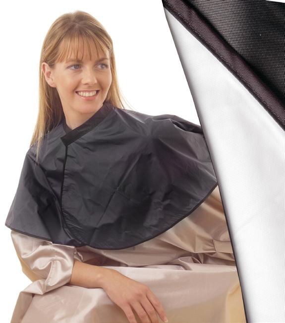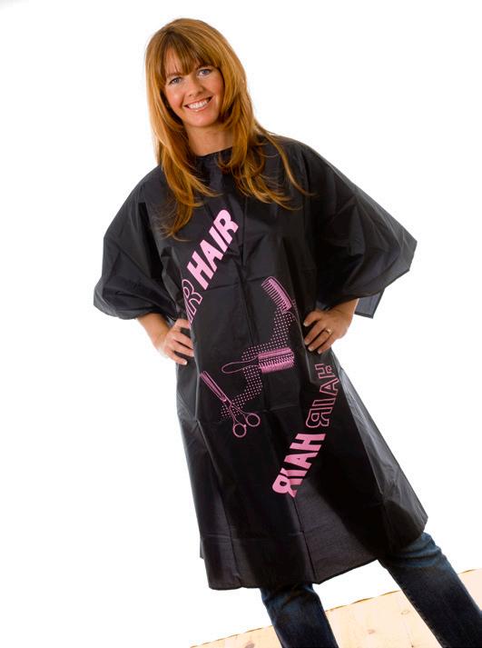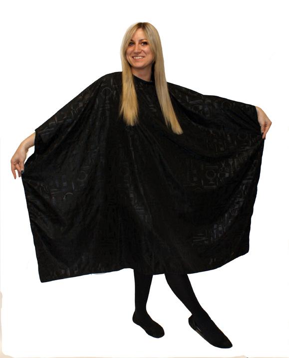 Stylish cutting cape, with an embossed design. Size: 128cm x 138cm. 100% polyester. Static free. Water repllent. Press-stud fastening that adjusts to fit all.